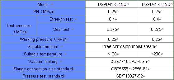 As closed equipment, the butterfly valve is adjusted used in the roughing line of free corrosion moist steam. The seal shaft during the valve is used 0.25 MPa pressure integrity, to ensure it won’t be leaking. The structure of DS9D41X-2.5C is double seat style. During the seats and shaft, it’s the rubber seal which is combined with the pressure integrity (0.25 MPa). Depend on the users, the valve could install electric heating device on the body.