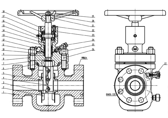 撐開式平板閘閥是為油田鉆井采油,閥門樹配套用閥而設(shè)計(jì)研制。油田井口每臺(tái)鉆井都需要配套防噴管匯、節(jié)流管匯,二管匯設(shè)備在油田鉆井缺一不可。油田進(jìn)口一臺(tái)平板閥需要八萬人民幣,為了給國家節(jié)省外匯,公司決定進(jìn)行設(shè)計(jì)研制。設(shè)計(jì)采用井控裝置、API6A標(biāo)準(zhǔn),結(jié)構(gòu)參照美國W-K-M公司結(jié)構(gòu)進(jìn)行設(shè)計(jì)。